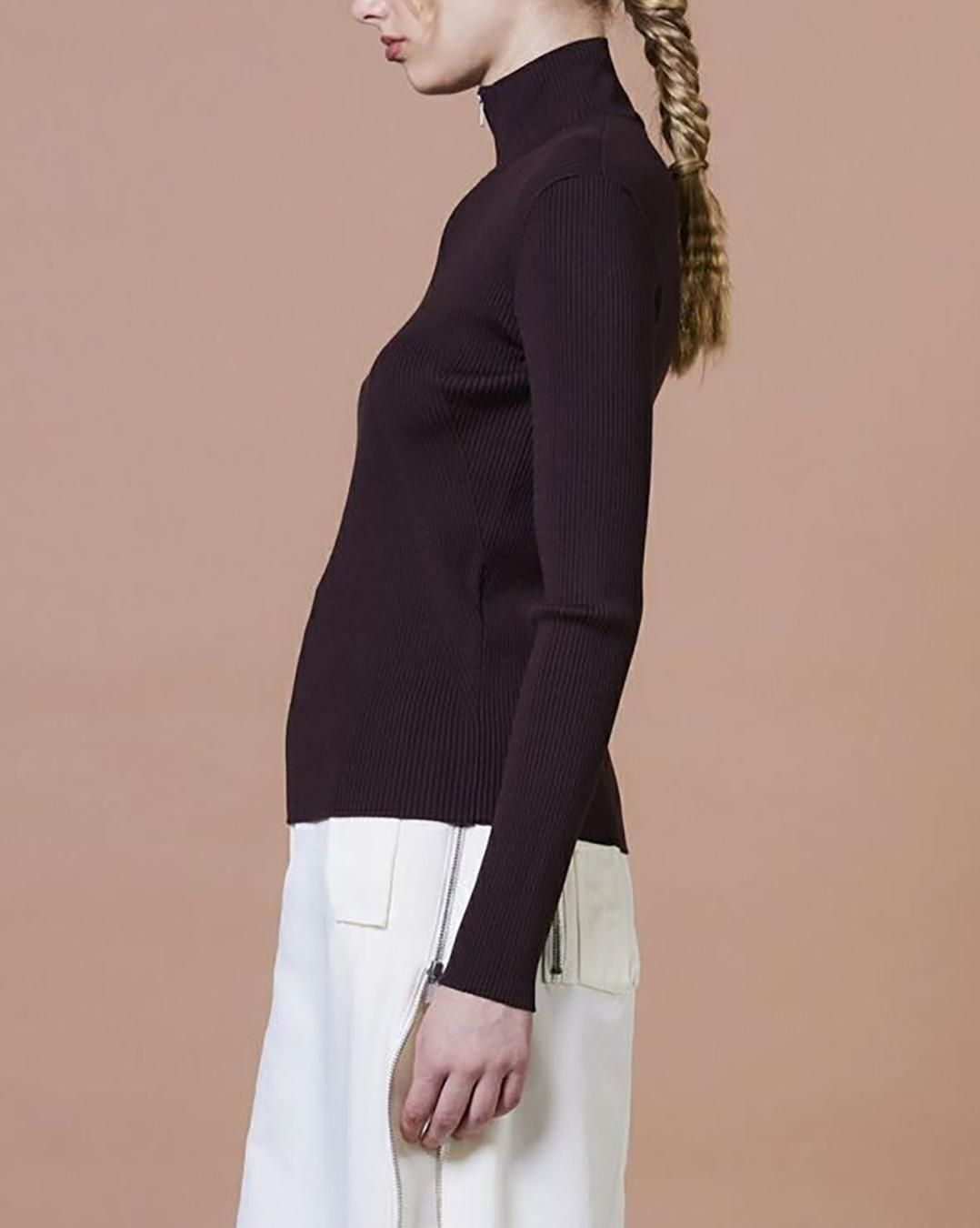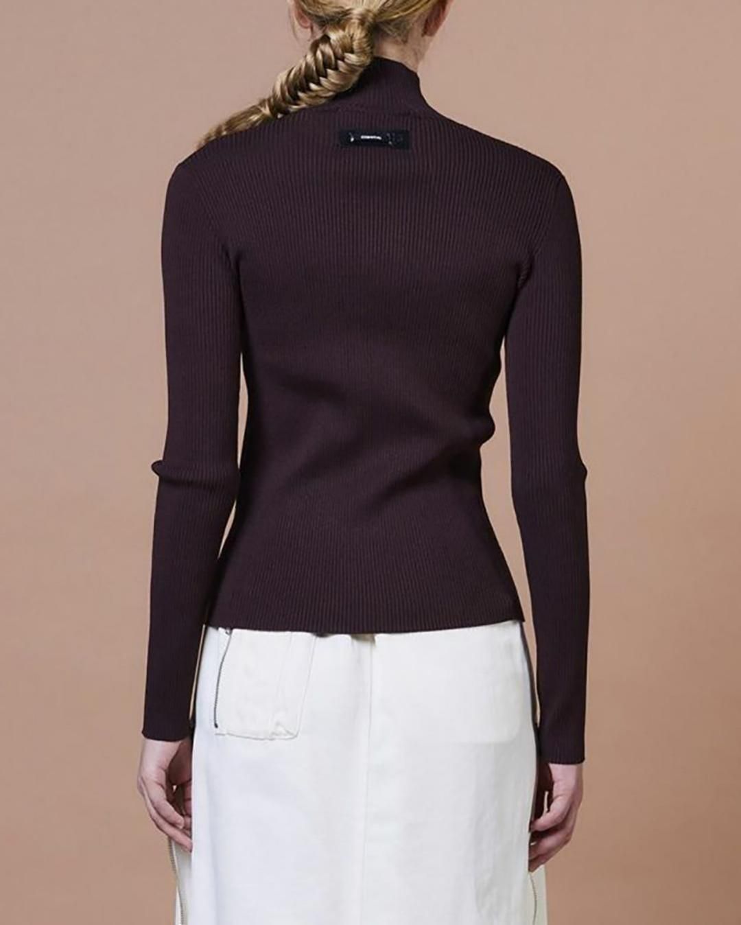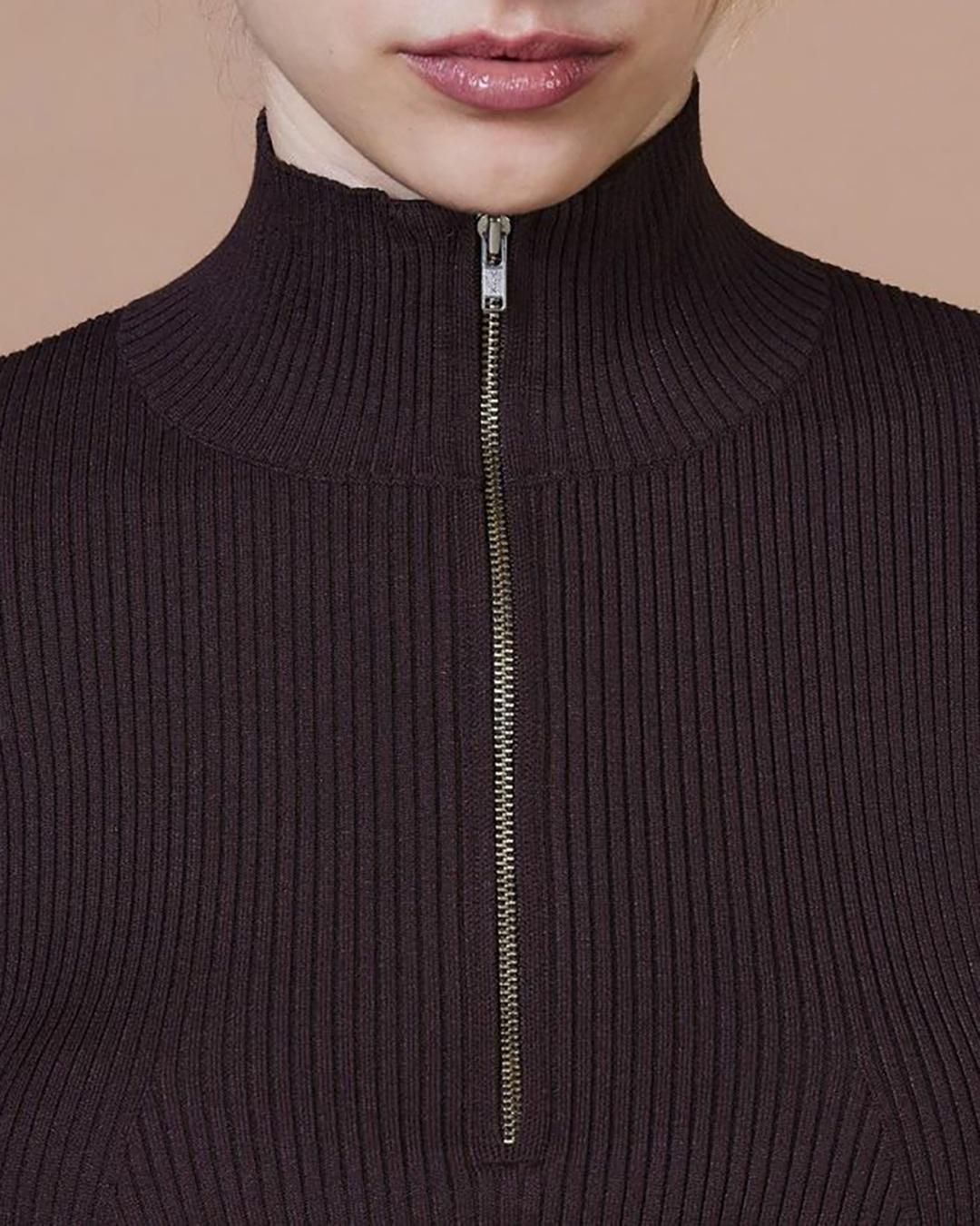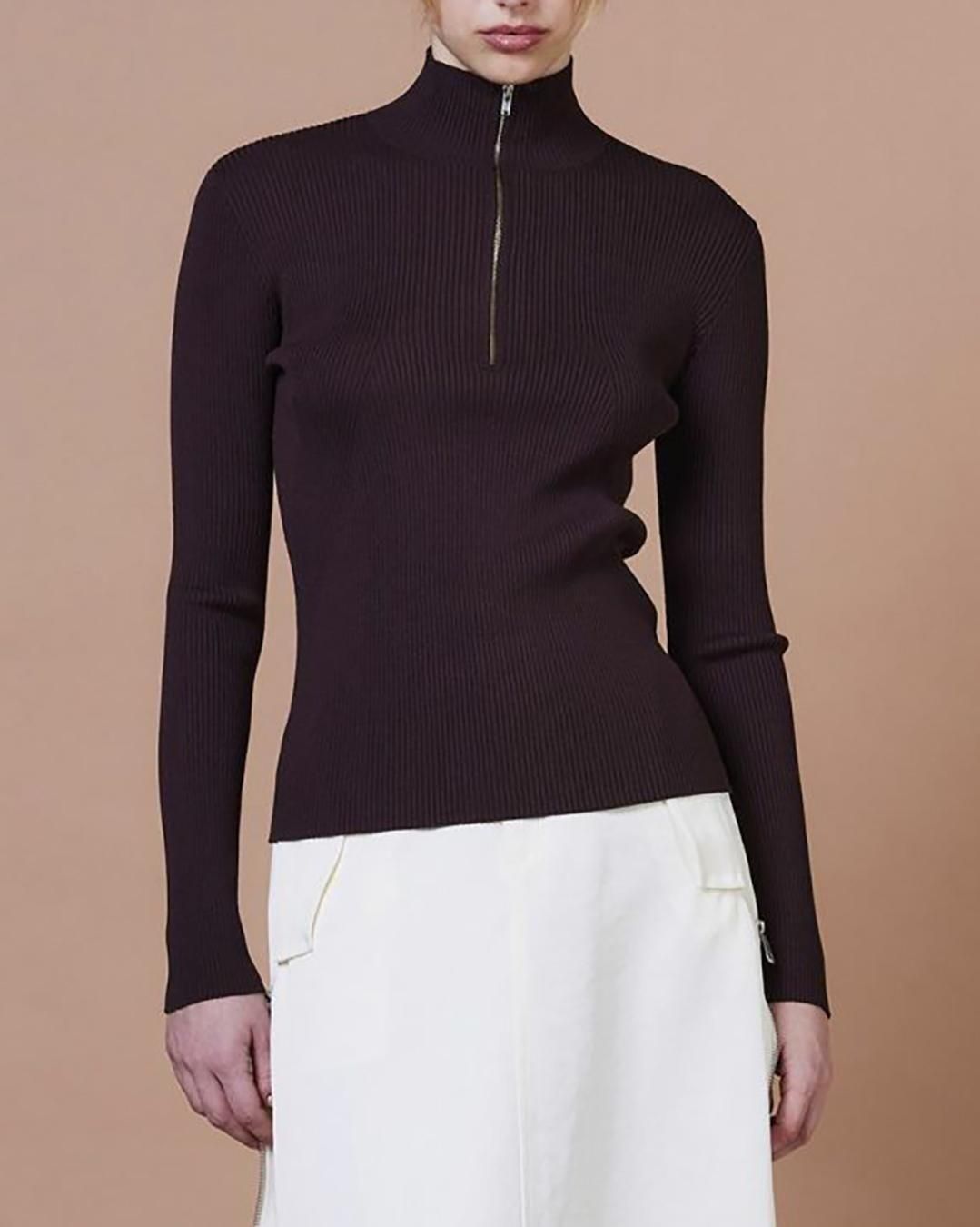 タイトなシルエットが女性らしいラインを引き立てるタートルネック。細やかなリブ編みと上品な光沢感が、さりげなく高級感を演出します。フロントにはハーフジップのファスナーをあしらい、抜け感のあるアクセントに。コンパクトなシルエットはボリュームのあるボトムスとの相性がよく、ロングスカートやワイドパンツと合わせれば、バランスの取れた旬なスタイリングが完成します。
