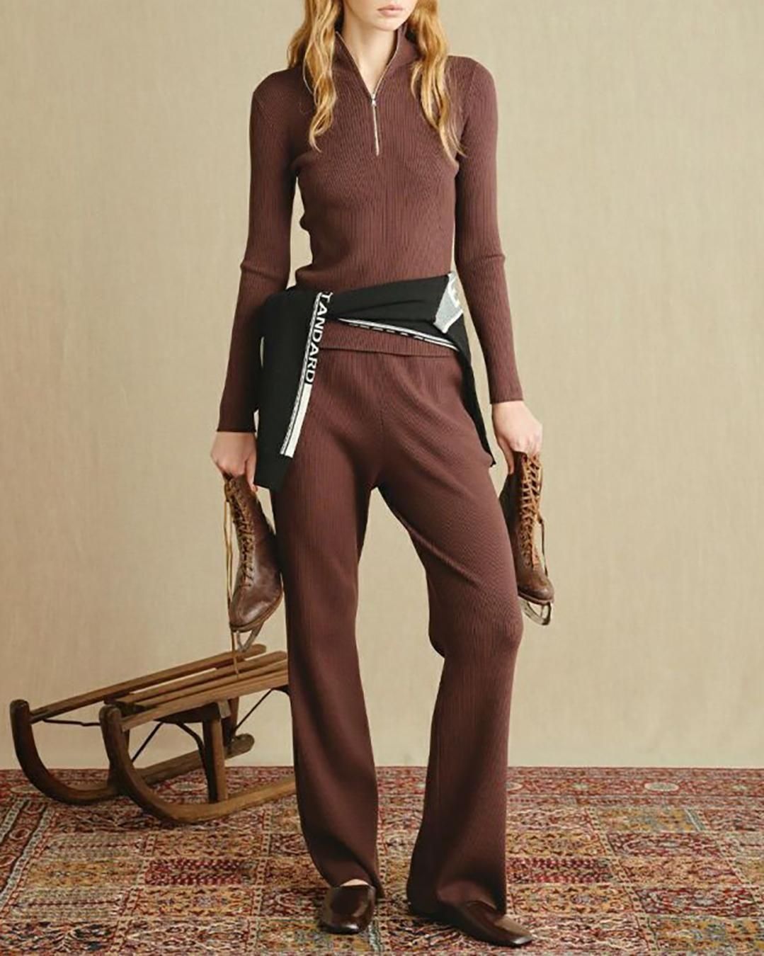 ダブルスタンダードクロージング|ヴィスコース ハーフジップトップス|ブラウン