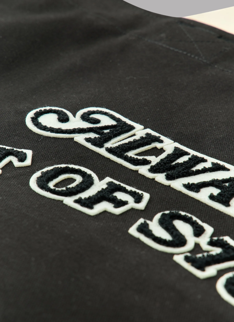 ・バッグの表面には、AOOSらしさを表現した相良刺繍のワッペンを縫い付けています。