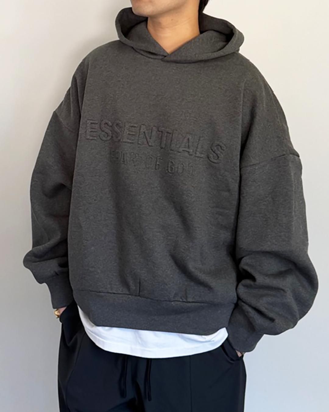クラシックフーディーは、快適な着心地としっかりとしたシルエットを実現する厚手のフリース素材を使用しています。クラシックなフィット感と、Fear of Godらしいゆったりとしたシルエットが特徴です。フロントには、エンボス加工された「Essentials Fear of God」ロゴがあしらわれています。ダブルレイヤーフーディー、サイドポケット、リブ編みの袖口と裾、そしてフードには「Fear of God Essentials」のラバーラベルが縫い付けられています。
